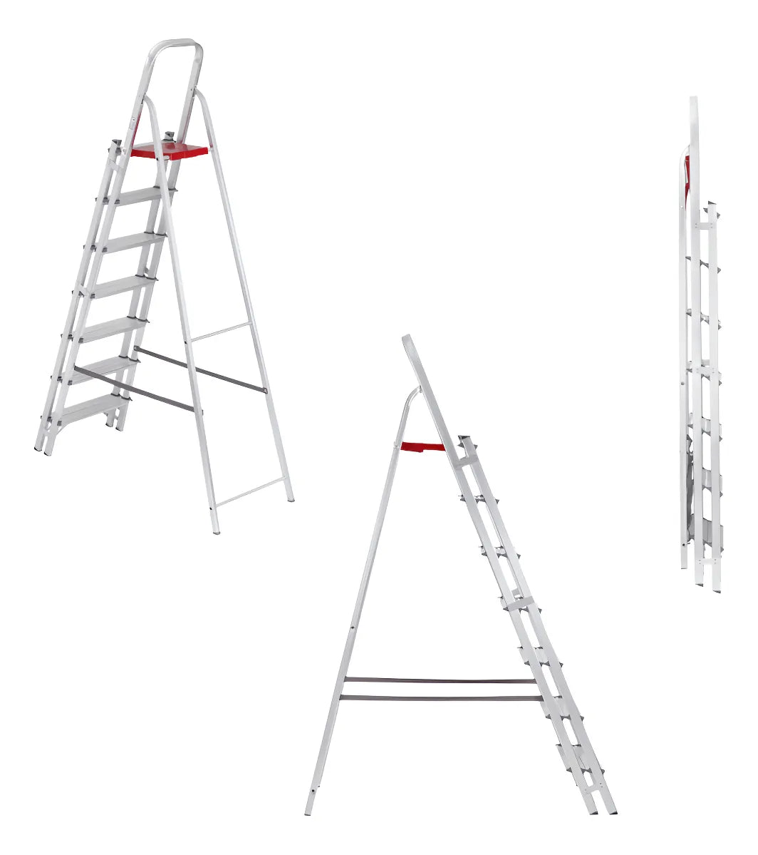 Escada doméstica indicada para pequenos reparos e uso residencial. Produzida em alumínio, leve e resistente, com degraus antiderrapantes que proporcionam segurança durante a utilização.