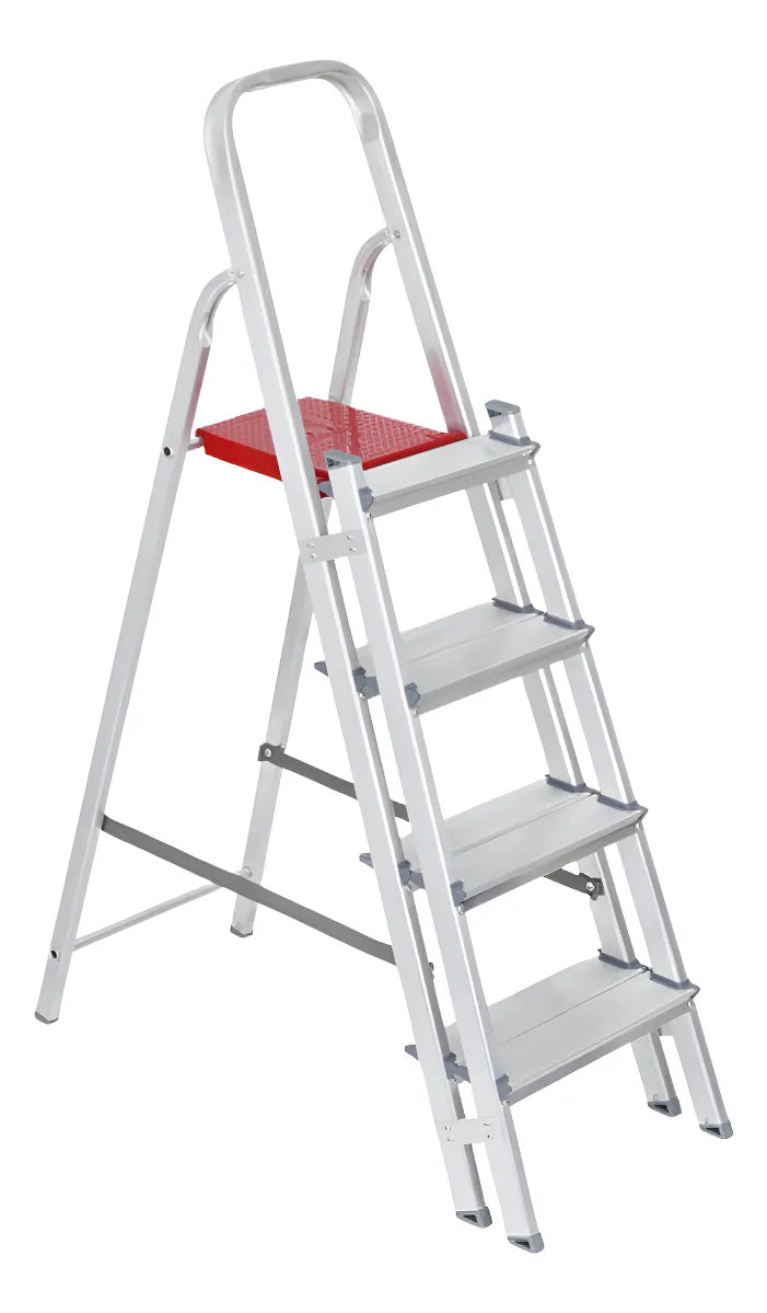 Escada doméstica indicada para pequenos reparos e uso residencial. Produzida em alumínio, leve e resistente, com degraus antiderrapantes que proporcionam segurança durante a utilização.