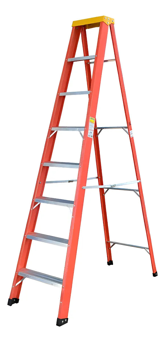 Escada com estrutura em fibra de vidro e 8 degraus, indicada para uso técnico e profissional. Desenvolvida para atividades que exigem acesso em altura, podendo ser utilizada em ambientes internos ou externos. A estrutura em fibra de vidro contribui para isolamento elétrico e resistência à corrosão, sendo adequada para rotinas de manutenção, instalação e serviços gerais, desde que utilizada conforme as orientações do fabricante e em superfície estável.