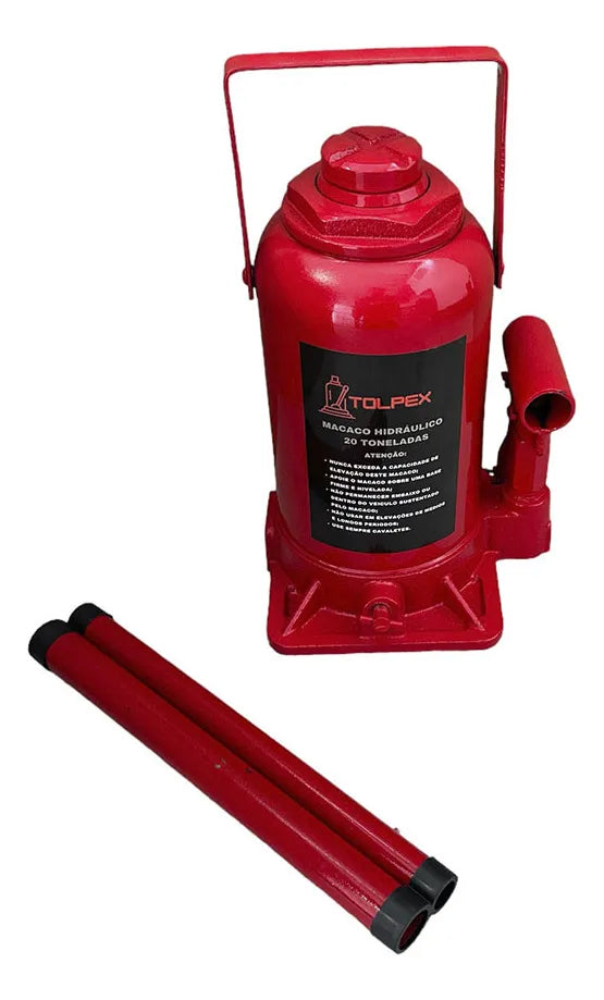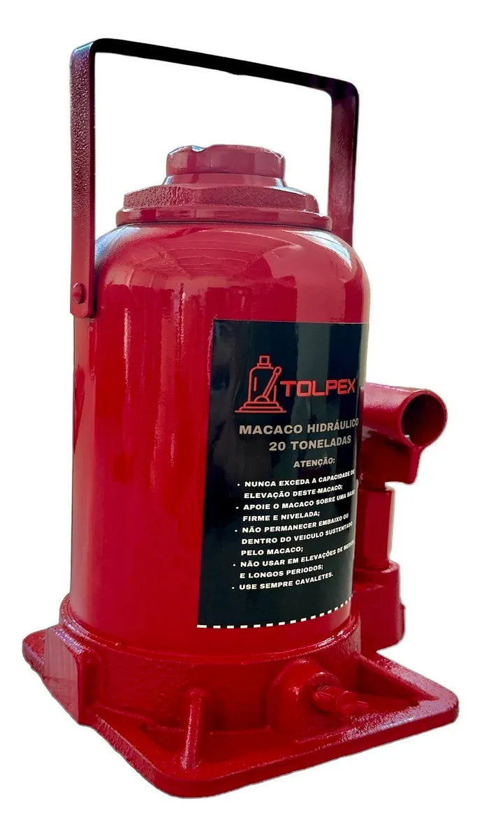 Macaco hidráulico tipo garrafa com capacidade de carga de até 20 toneladas, indicado para a elevação de veículos e cargas de grande porte em operações de manutenção. Desenvolvido para uso automotivo e utilitário, deve ser utilizado conforme as orientações do fabricante, em superfície firme e com os pontos de apoio adequados.
