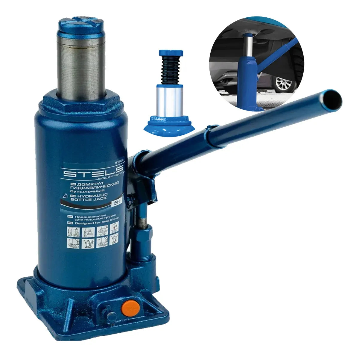 Macaco hidráulico tipo garrafa com capacidade de carga de até 8 toneladas, indicado para a elevação de veículos e cargas médias em operações de manutenção. Desenvolvido para uso automotivo e utilitário, deve ser utilizado conforme as orientações do fabricante, em superfície firme e com os pontos de apoio adequados.